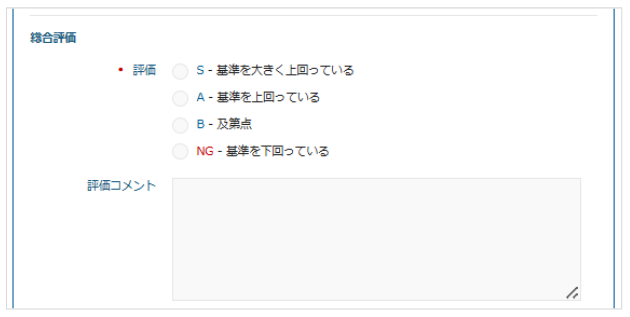 「総合評価(S/A/B/NG)」「総合評価コメント」は完全固定となります。