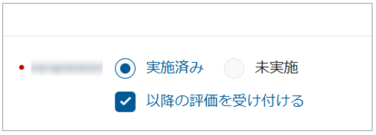 ※「実施済み」を選択した場合【以降の評価を受け付ける】かどうかのチェックが表示され、チェックを外した場合は該当選考の面接官による評価は不要となります。(採用担当者側での代理評価は引き続き可能です)