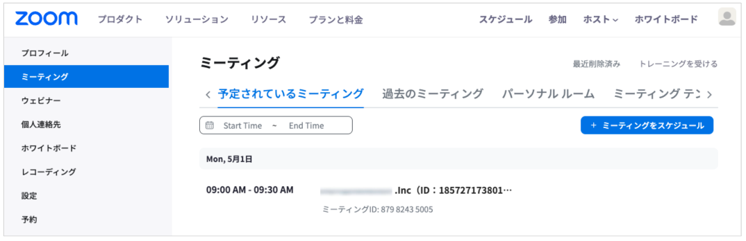 1. Zoom上にMeetingsが追加されます。Zoom Meetingsのタイトルは「企業名(ID:候補者ID)」で作成されます。