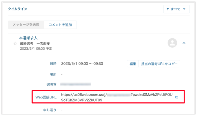 候補者管理画面から選考・面談のWeb会議URLを発行する