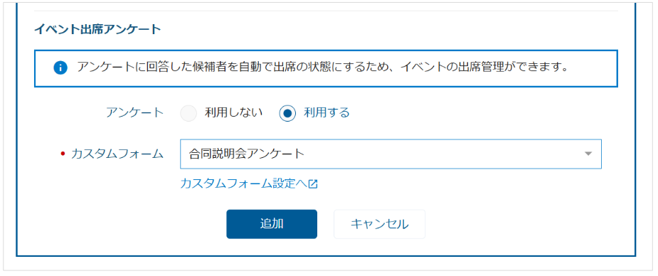 2.日程等必要事項をご記入後、アンケートを「利用する」を選択し「カスタムフォーム」をご選択ください。