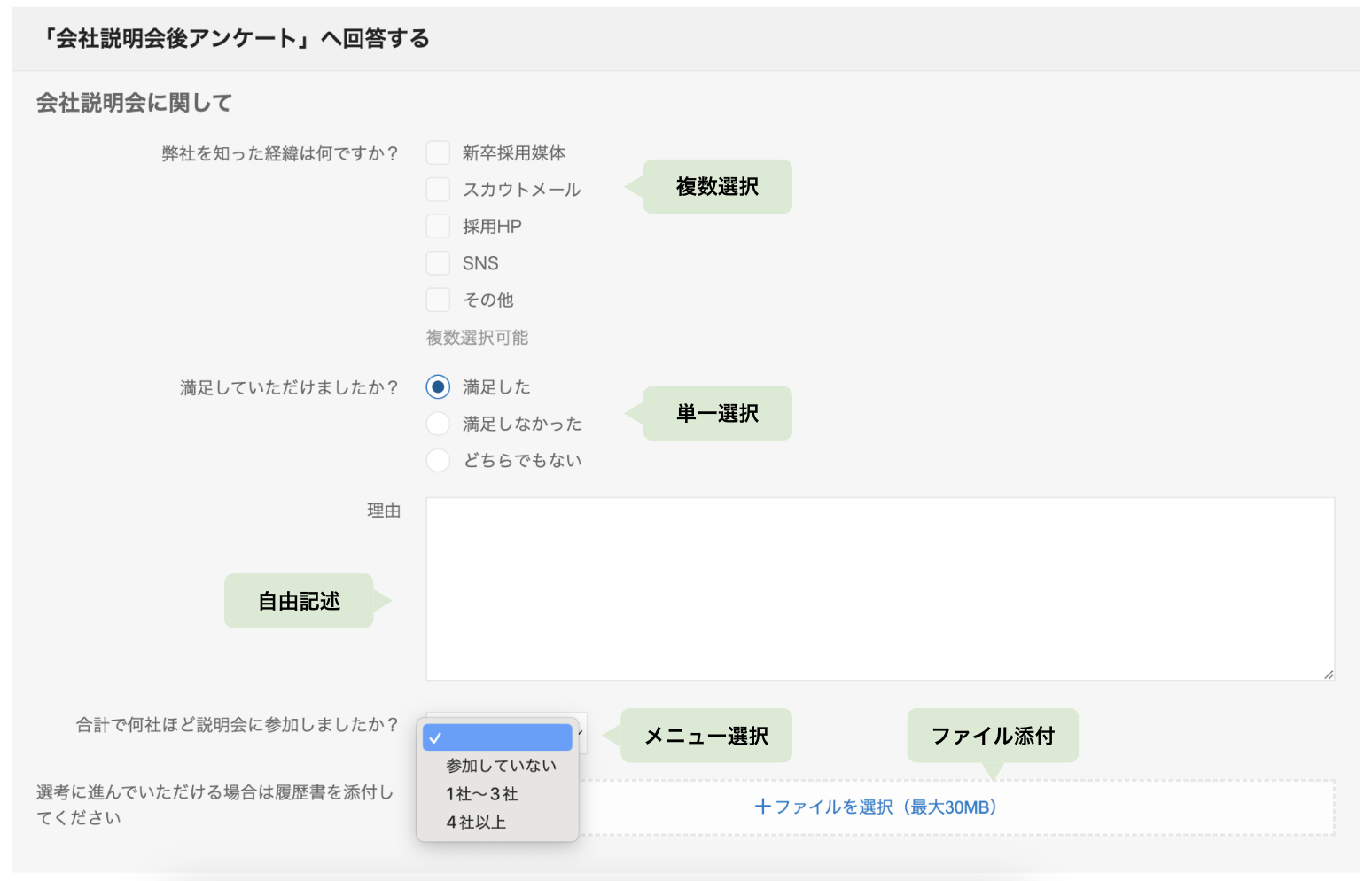 | 複数選択 | チェックボックス形式で複数選択できる |