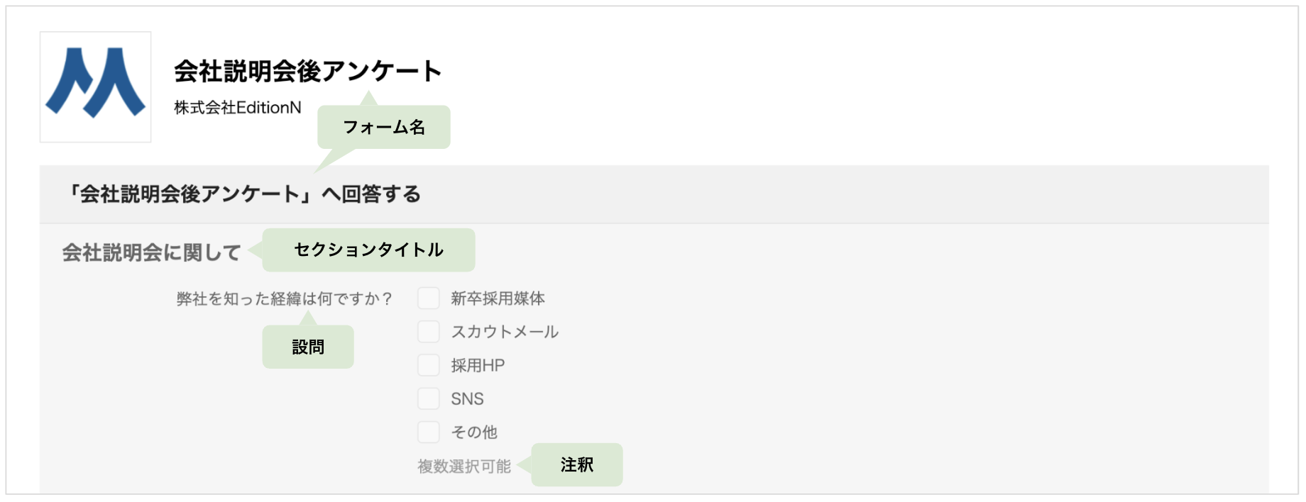 ※ フォーム名も候補者やエージェントに表示されます。