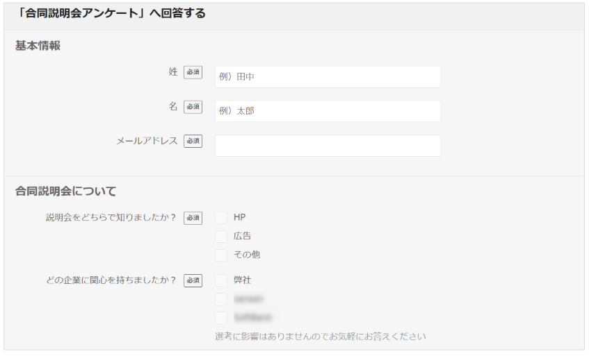 ▼候補者から見たアンケート画面