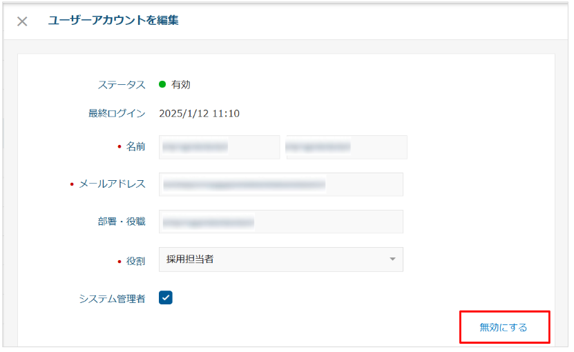 A. 各ユーザーアカウントの操作記録の消滅防止やレポートの算出等の関係により、ユーザーアカウントは「削除」ではなく「無効」化できる仕様になっています。