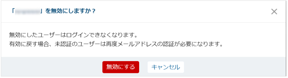 3. 該当のユーザーアカウントをクリックし、「無効にする」をクリックします。