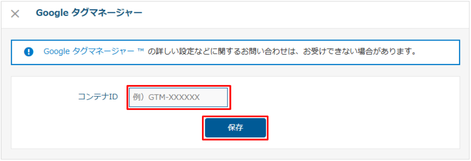 2.取得したコンテナIDを入力し「保存」をクリックしたら完了です。