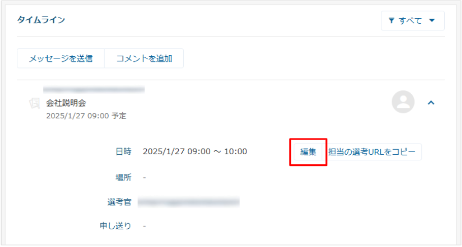 1. 該当の候補者ページのタイムラインにて、該当の選考枠をクリックします。
