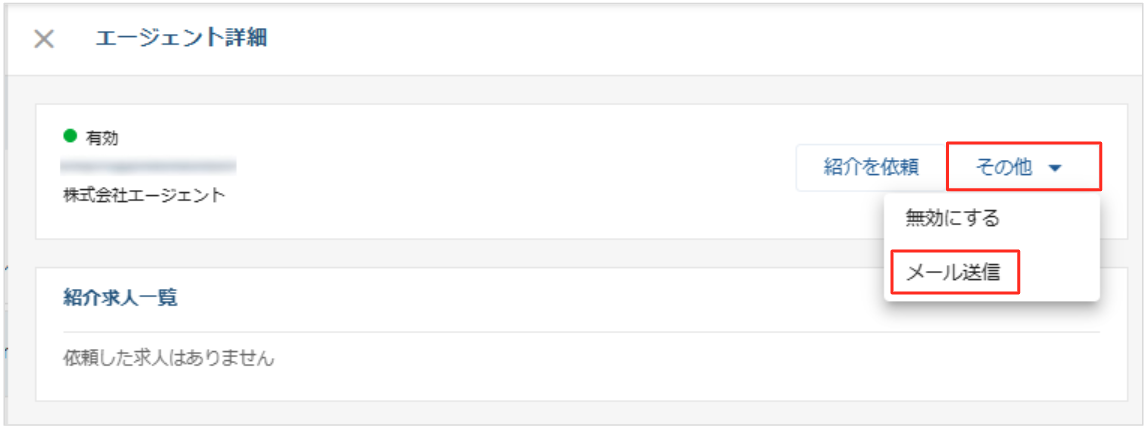 応募経路がエージェントになっている場合、そのエージェントに対して各候補者の詳細画面よりメールを送信することができます。