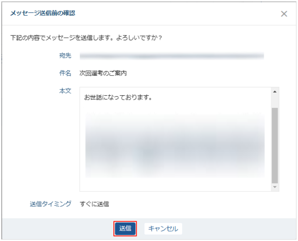 「選考管理」にて送信したメール(送受信)