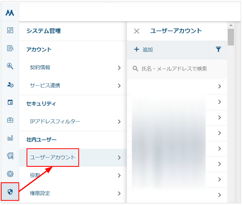 ※ユーザーアカウント一覧に該当のユーザーアカウント名が表示されない場合は、フィルターマークをクリックし、「ステータス:未認証」を選択の上、絞り込み検索してください