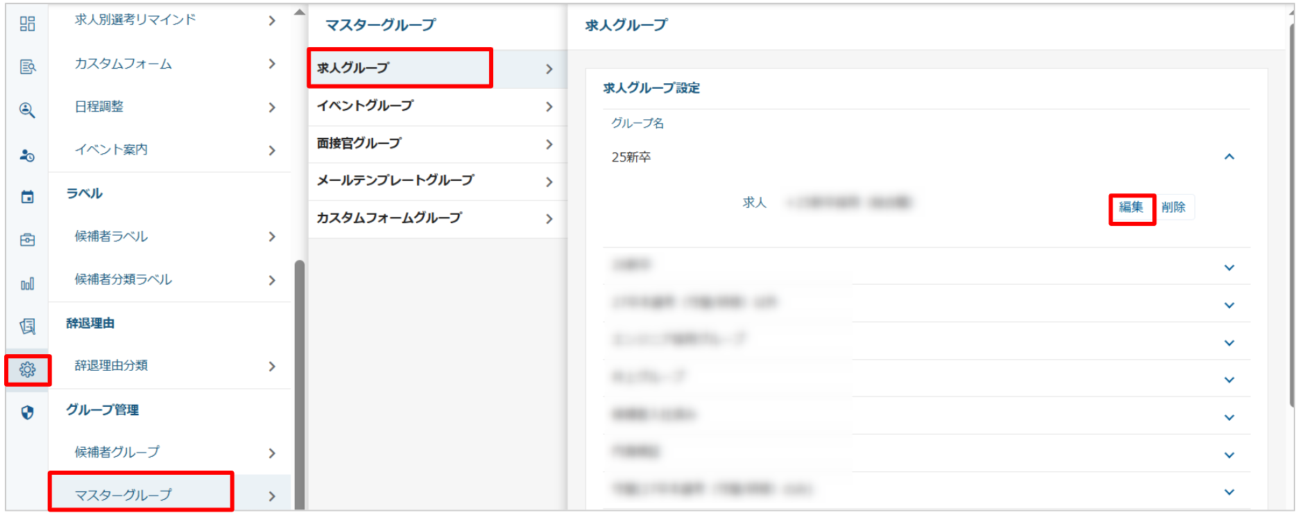 「求人グループ」を該当の求人を含めた内容で修正する