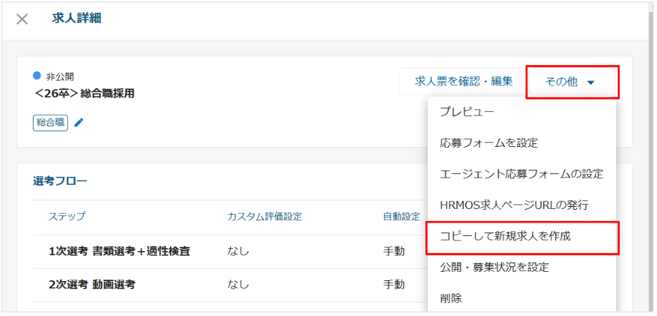2. コピーした求人の選考ステップの内容を編集する