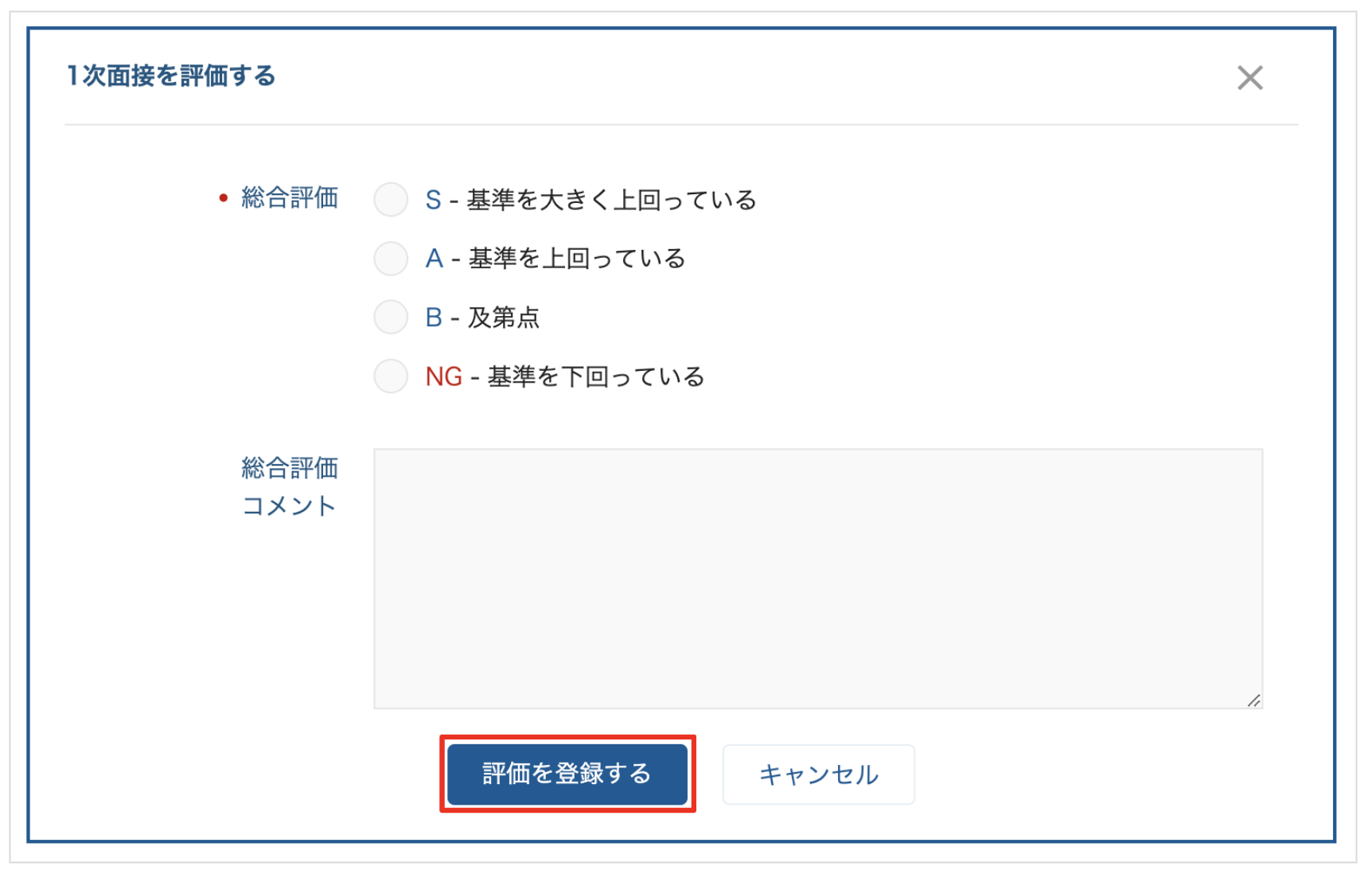 3. 各項目を入力して「評価を登録する」をクリックしたら完了です。
