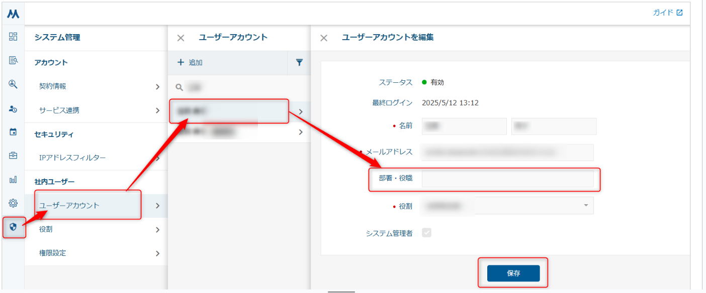 A. 「システム管理者」権限が付与されているユーザーアカウントの場合、下記手順で編集が可能です。