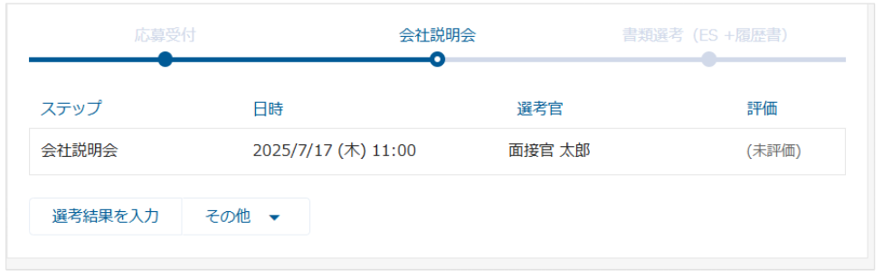 ※カスタム評価は評価入力時に反映され、「選考結果を入力」画面ではカスタム評価は表示されませんのでご注意ください。
