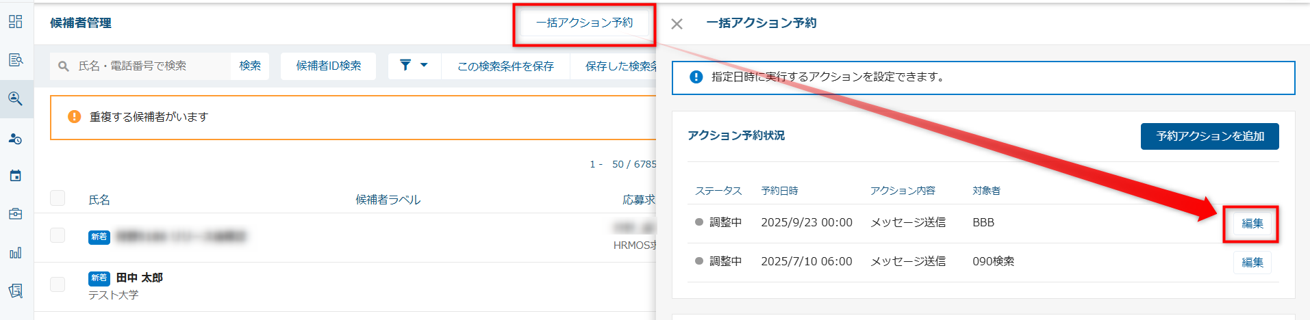 a)候補者を選択し、送信予約した場合