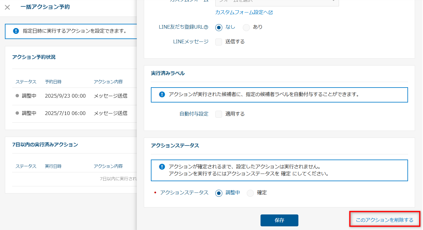 b)「一括アクション予約」を使って送信予約した場合