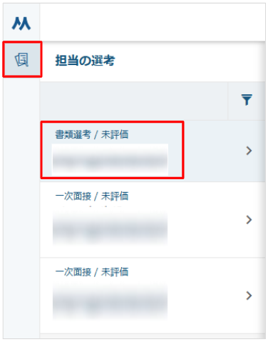 1. 左メニュー「担当の選考」をクリックして、該当の候補者を選択します。