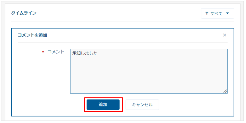 3. 「コメント」に内容を入力して、「追加」をクリックしたら完了です。