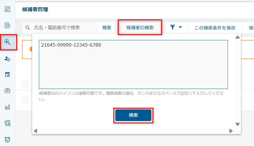 4.「候補者管理」にてIDをペーストして対象の候補者を検索する