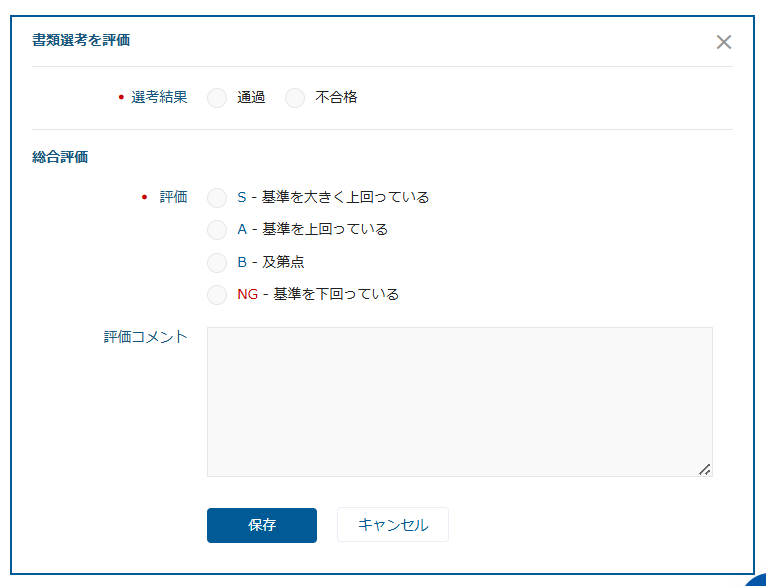 Q.書類選考など、採用担当者自身にて評価と選考結果を入力したい